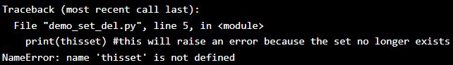 print(thisset) #the set after removal