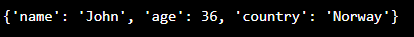 thisdict = dict(name = "John", age = 36, country = "Norway")
