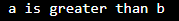 이 예에서는 a가 b보다 크므로 true가 아니고 elif 조건도 true가 아니므로 else 조건으로 이동한다.